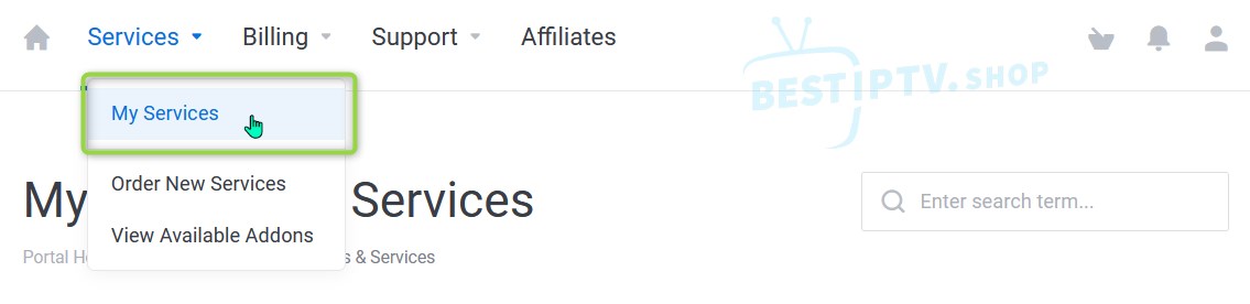 1. Login to Best IPTV Dashboard and click on My Services